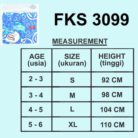 1. Uk. S untuk anak Usia 2-3 tahun dan atau tinggi 92cm