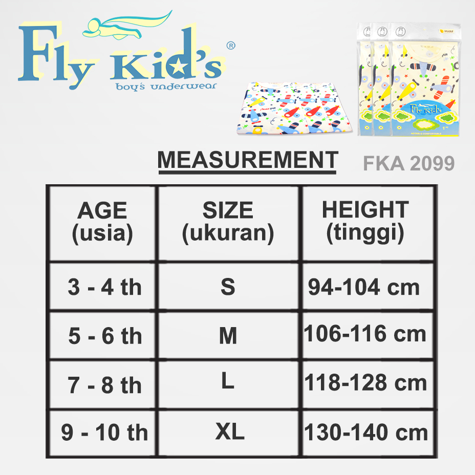 Produk Fly Kids kali ini adalah Pakaian dalam khusus anak laki-laki yang dimana di desain khusus dan memiliki bahan cotton yang lembut sehingga anak merasa nyaman saat digunakan, untuk warna telah kami sesuai kan, pastinya produk ini akan membuat anak terlihat ganteng, keren dan senang saat memakainya