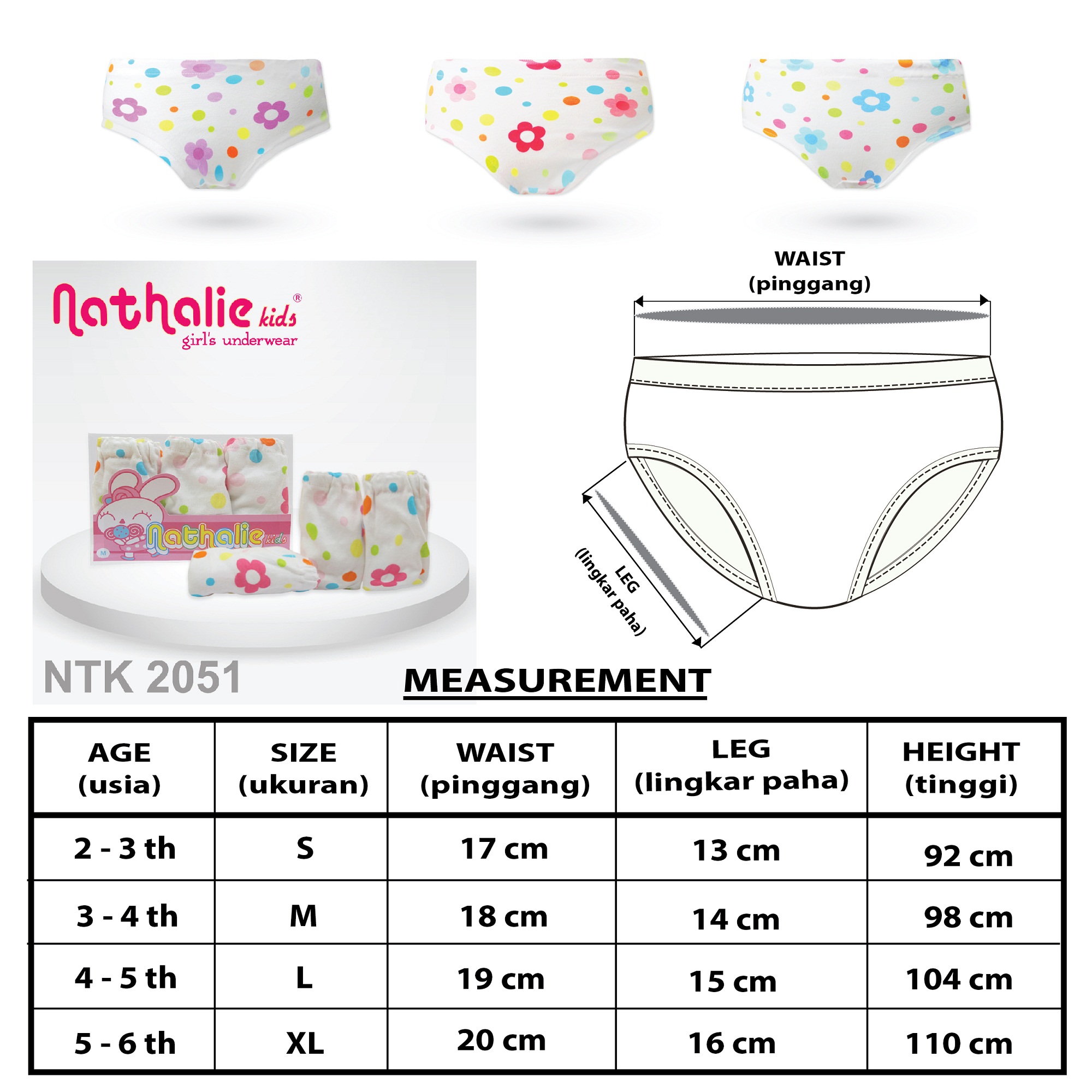 NTK 1079 - Panties Anak Wanita Nathalie Kids Printy Back